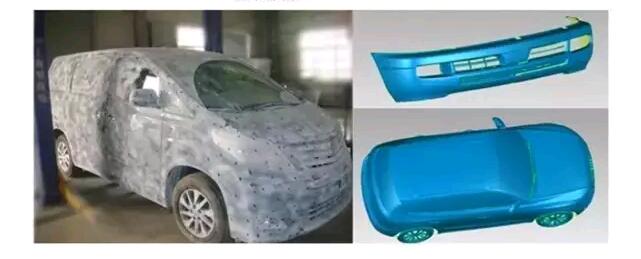 三維掃描系統(tǒng)能在極短時間內(nèi),對結(jié)構(gòu)復雜、曲面較多的配件或者難以成型的大型汽車樣件,進行快速掃描,制造出高精細度高的產(chǎn)品。利用三維數(shù)據(jù)可以對原有數(shù)模進行分析檢測,最大限度保證了配件及模具的質(zhì)量;利用三維數(shù)據(jù)進行逆向建模,可以提高設(shè)計師的工作效率和設(shè)計質(zhì)量,從而保證模具的生產(chǎn)時間。