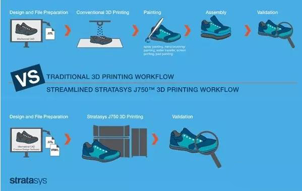 從上圖我們可以看到,J750只需一次打印作業(yè)就制造出了一只完整的運(yùn)動(dòng)鞋。“這款3D打印機(jī)最重要的一點(diǎn)就是突破了現(xiàn)實(shí)的門(mén)檻。”Stratasys公司首席商務(wù)官Josh Claman說(shuō)。