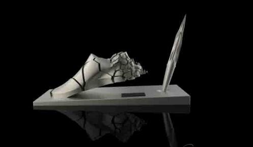 隨著3D打印的出現(xiàn)以及被廣泛應(yīng)用,一大批優(yōu)秀的設(shè)計(jì)師將一件件極具藝術(shù)美感的設(shè)計(jì)作品精確形像地還原于觀眾的視線。這件極具藝術(shù)設(shè)計(jì)感的跑鞋臺(tái)牌作品是國內(nèi)著名的美女設(shè)計(jì)師宋波紋設(shè)計(jì)的一款商務(wù)禮品,鞋子的造型表達(dá)的是關(guān)于速度,在奔跑的時(shí)候產(chǎn)生形象延時(shí)的感覺,裂變的重復(fù)排列讓鞋子帶有一定的力量感。而整體形象是一個(gè)動(dòng)態(tài)的靜幀,動(dòng)靜結(jié)合,讓小雕塑穩(wěn)重、生動(dòng)。