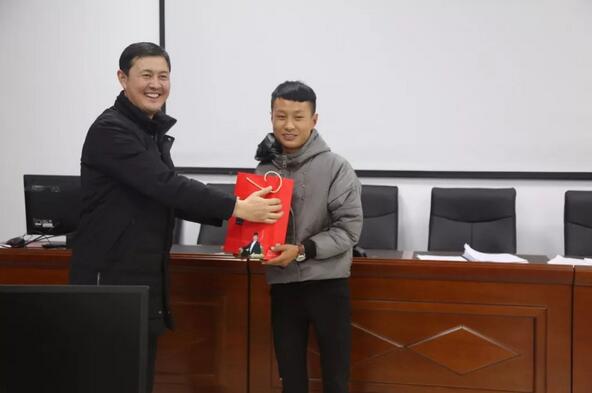 海晏經(jīng)信局羅布加局長為獲“一等獎(jiǎng)”的優(yōu)秀培訓(xùn)學(xué)員頒獎(jiǎng)