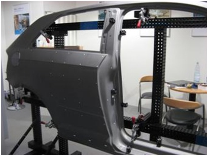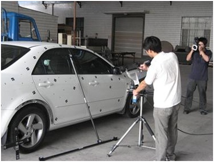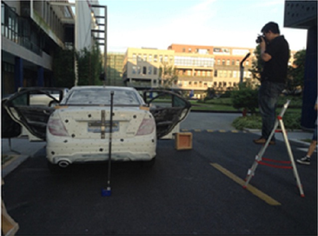 由于攝影測量系統得到的是離散孤立圓點的坐標,為了得到大型物體(如汽車油泥模型)的完整點云,通常與3DSS三維掃描儀配合使用,以輕松得到物體的高精度點云。在這里,攝影測量系統的作用是得到物體的整體框架,3DSS分塊掃描得到物體的局部點云,并且通過框架點自動拼接起來。
